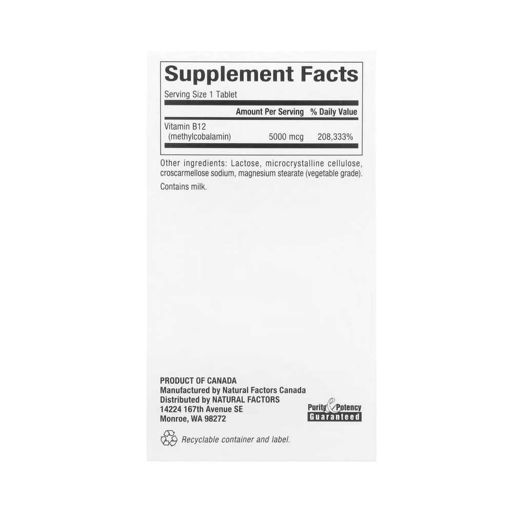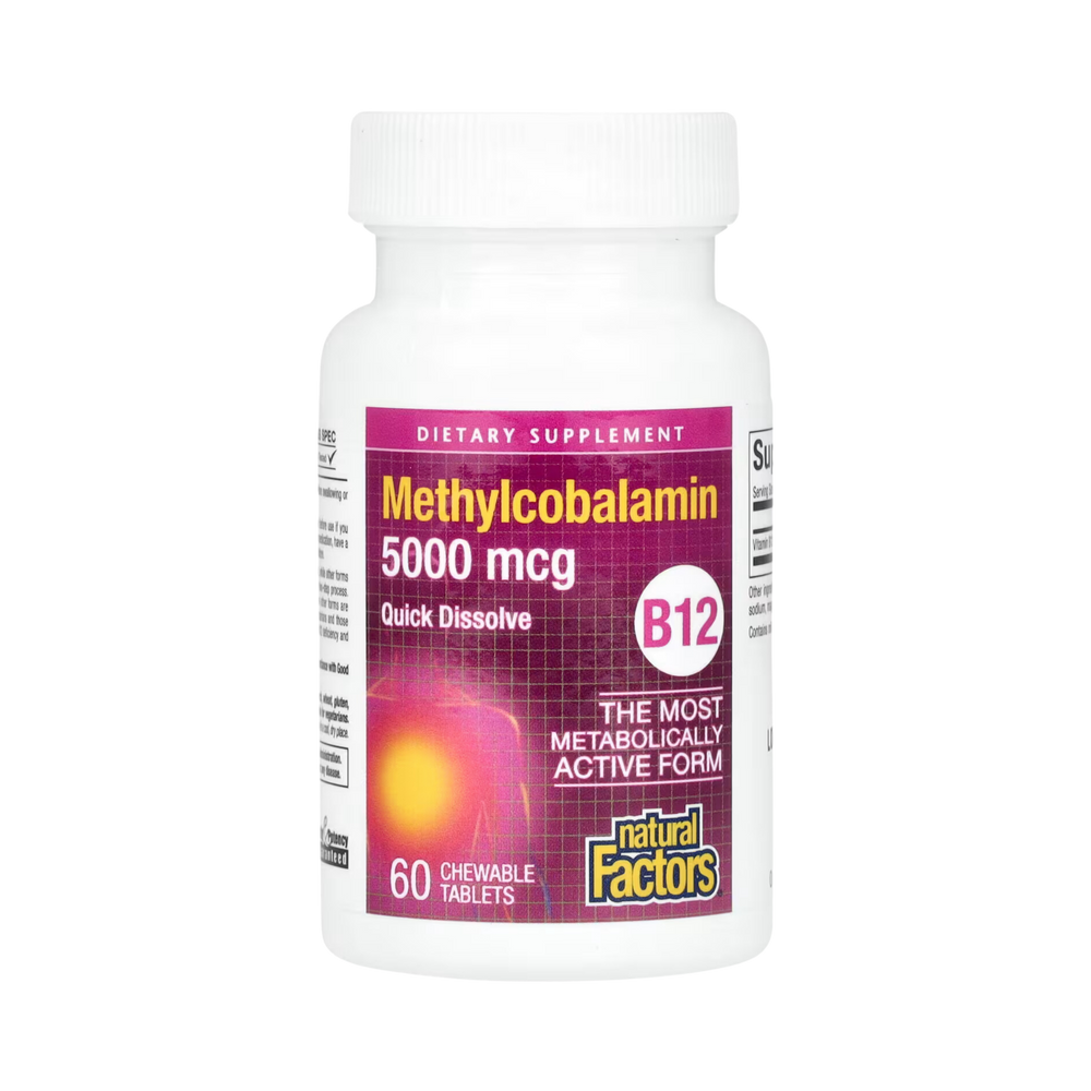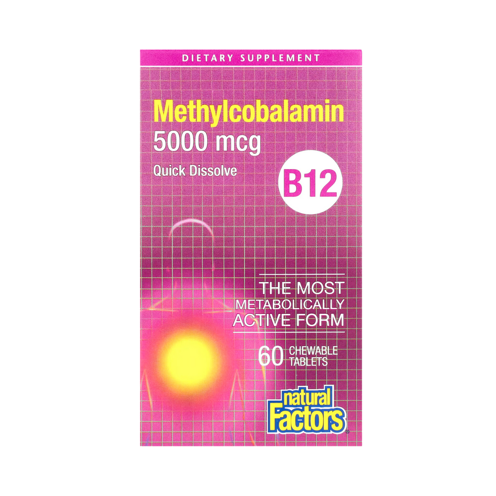 Natural Factors, B12, Methylcobalamin, 5,000 mcg, 60 Chewable Tablets