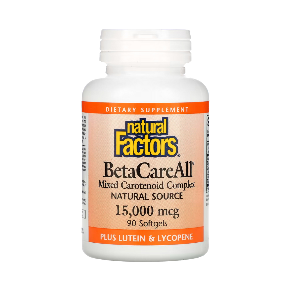 BetaCareAll is a unique mixed carotenoid formula sourced from whole algae and sustainable palm oil providing naturally sourced beta-carotene. It also provides other beneficial carotenoids such as lycopene, lutein, and zeaxanthin. Beta-carotene is converted to vitamin A in the body, which is essential to many body processes, including maintenance of healthy skin, vision, mucous membranes, bones and teeth, and healthy immune function. Carotenoids are involved in antioxidants processes that help protect us from damage to cellular structures throughout the human body. With today's lifestyle, it is difficult to eat enough fruits and vegetables, which makes BetaCareAll an important source of precious carotenoids.