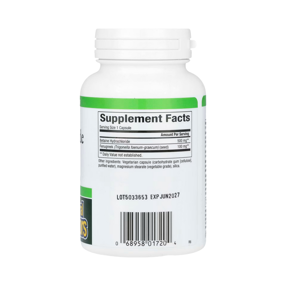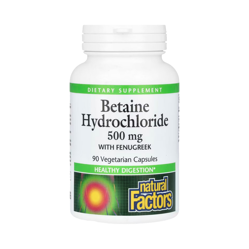 Natural Factors, Betaine Hydrochloride with Fenugreek, 500 Mg, 90 Vegetarian Capsules