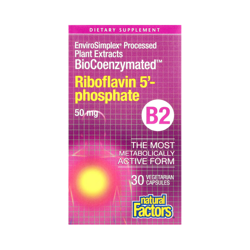 Riboflavin (vitamin B2) plays a key role in the activation and conversion of other B vitamins as well as in red blood cell synthesis, fat and glucose metabolism, and the production and regulation of specific biochemicals. Riboflavin 5'-phosphate is the coenzyme form of vitamin B2. Taking riboflavin 5'-phosphate allows for greater absorption and bioavailability than non- coenzyme forms.