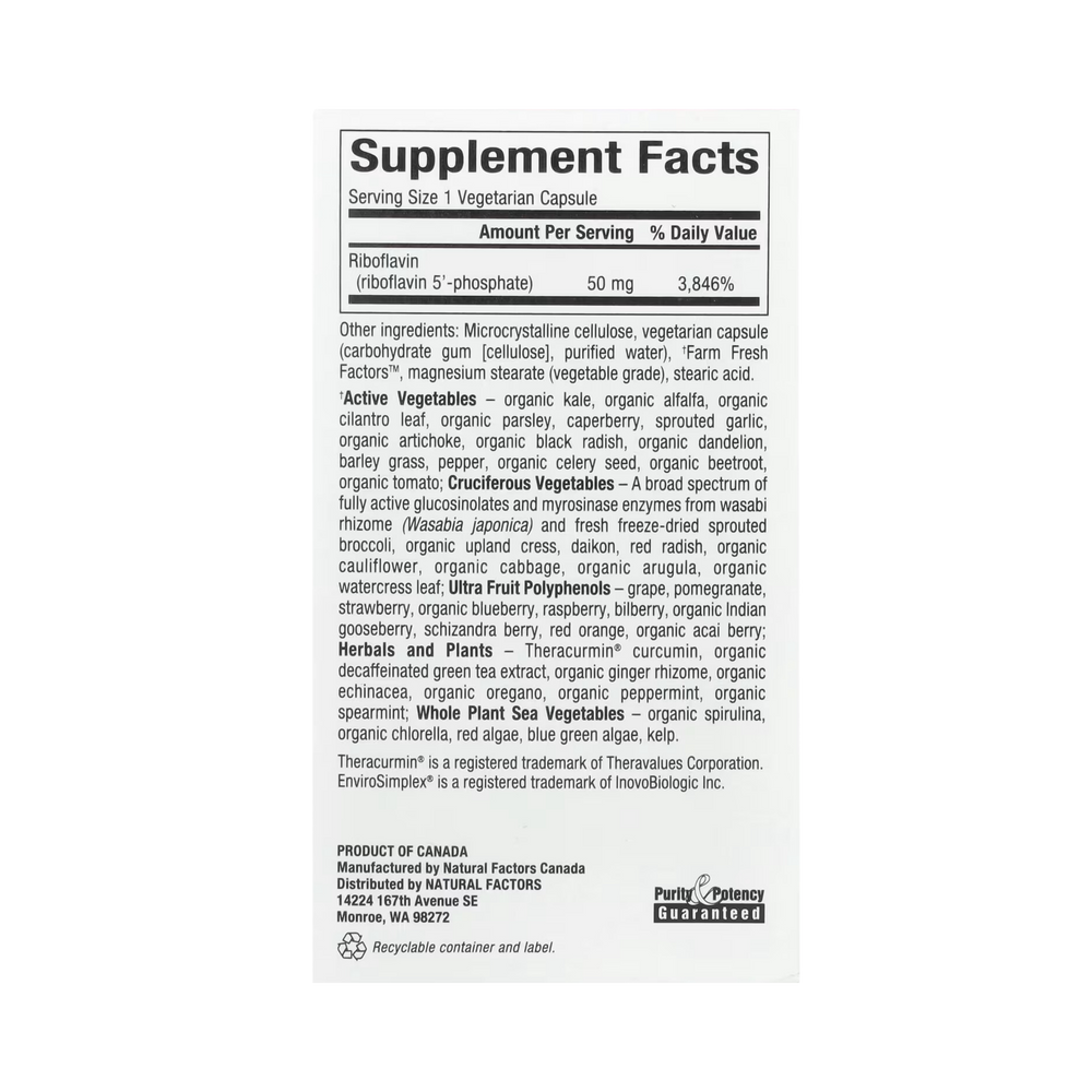 | Riboflavin (riboflavin 5'-phosphate) | 50 mg | 3,846% |