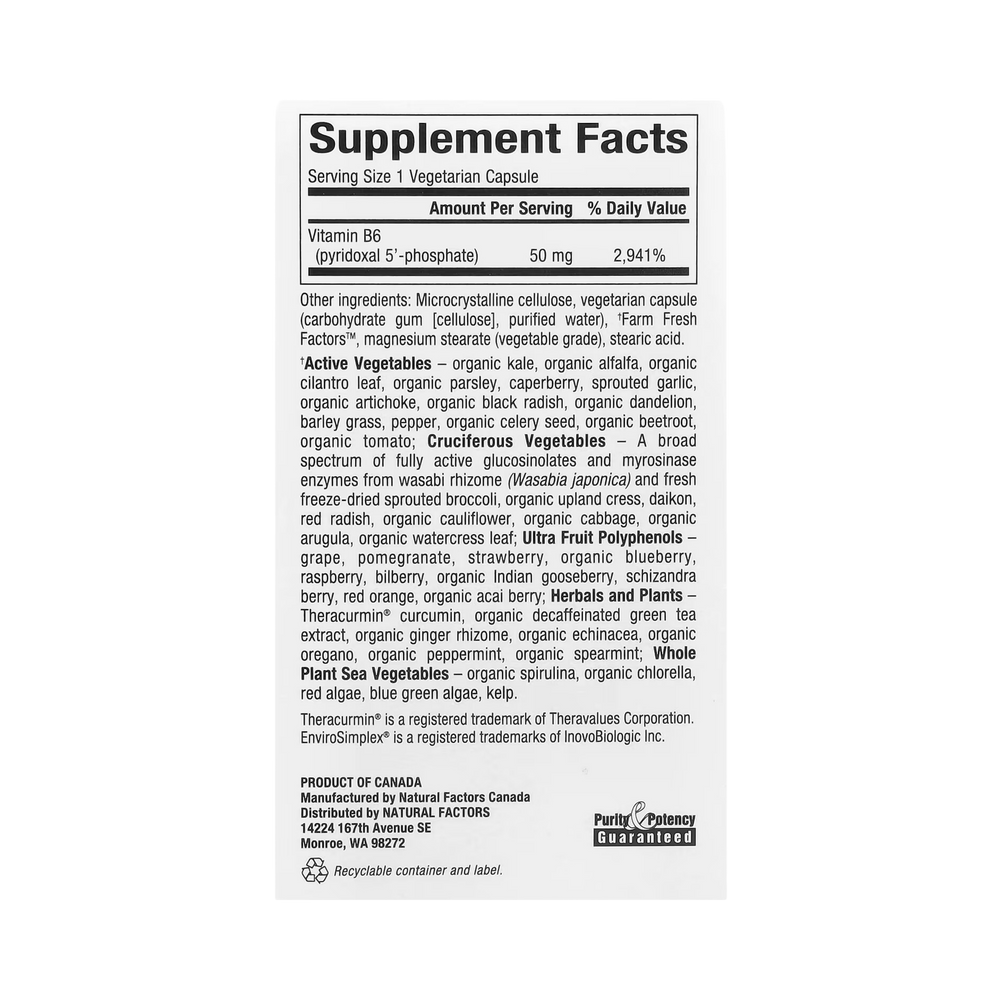 Natural Factors, BioCoenzymated, B6, Pyridoxal 5', Phosphate, 50 Mg, 30 Vegetarian Capsules