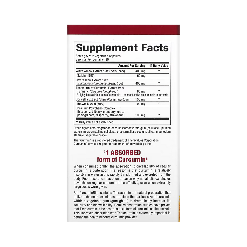 Joint Curcumizer combines Theracurmin with supercharged supplement extracts - white willow, devil's claw, boswellia, and Ultra Fruit Polyphenol Complex to: