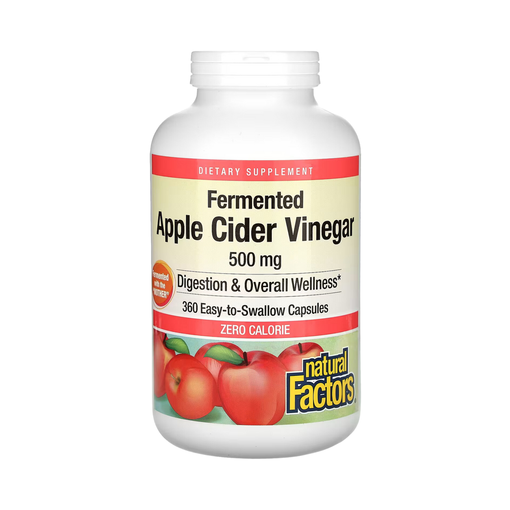Natural Factors, Fermented Apple Cider Vinegar, 500 Mg, 360 Easy-to -Swallow Capsules