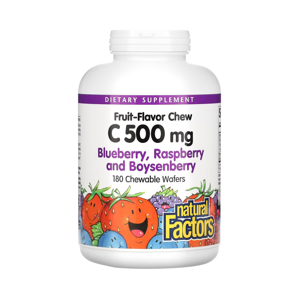 Natural Factors, Fruit-Flavor Chew Vitamin C, Blueberry, Raspberry and Boysenberry, 500 Mg, 180 Chewable Wafers