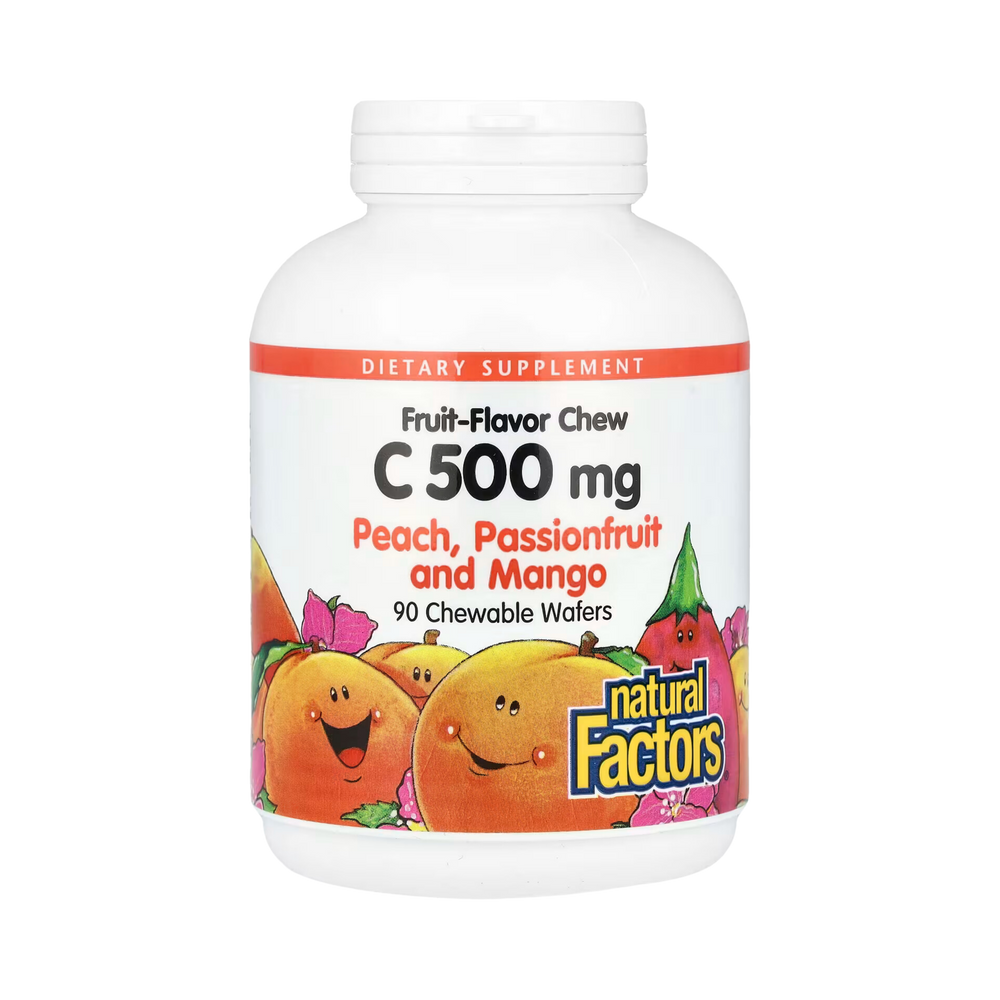 Natural Factors, Fruit-Flavor Chew Vitamin C, Peach, Passionfruit and Mango, 500 Mg, 90 Chewable Wafers