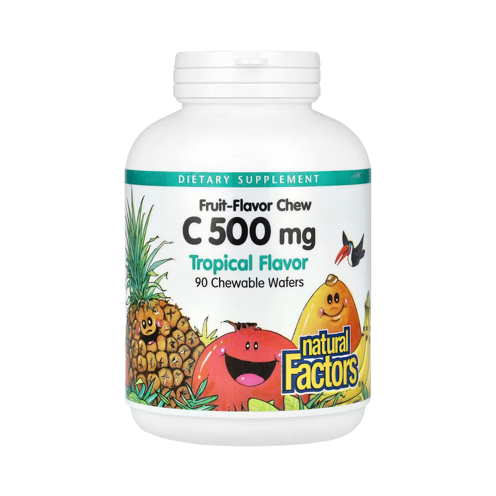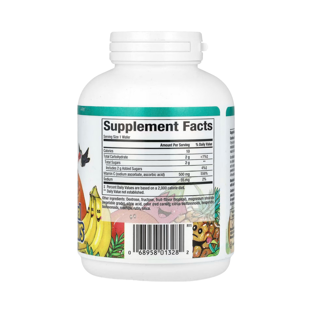 Our delicious fruit-flavored chewable vitamin C wafers contain 500 mg of vitamin C in a blend of citrus bioflavonoids, hesperidin, rosehips, and rutin. Bioflavonoids act in synergy with vitamin C to promote antioxidant activity. Vitamin C is a powerful antioxidant which support healthy bones, cartilage, teeth, and gums. A free radical scavenger supporting cellular health.