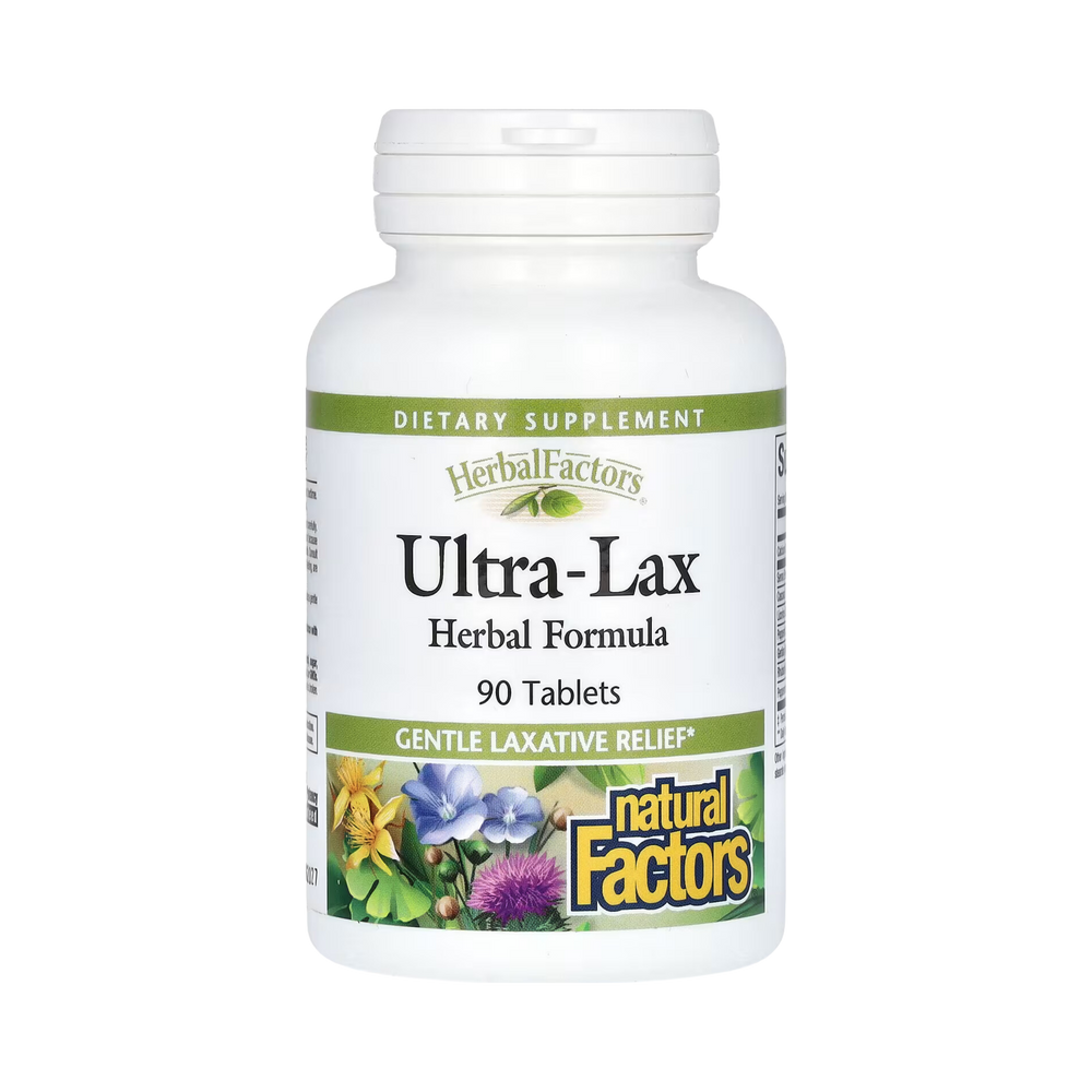 Natural Factors Ultra-Lax contains natural active herbal ingredients that produce a gentle laxative effect in 6-12 hours.