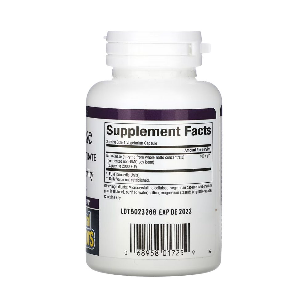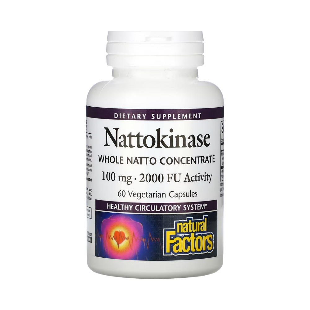Nattokinase from Natural Factors is a unique whole natto concentrate from fermented non-GMO soy beans in a highly stable form ensuring optimal activity. Supports circulatory health and already healthy levels of blood clotting factors within the normal range.