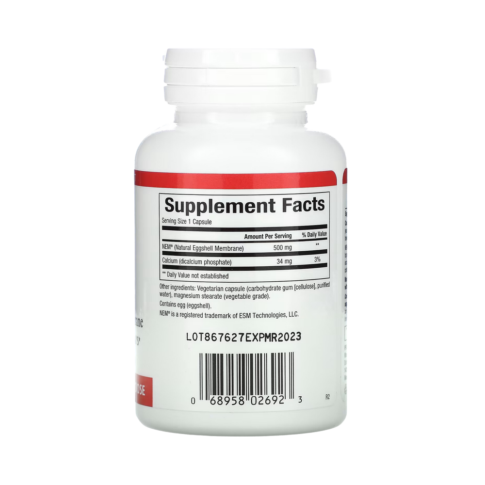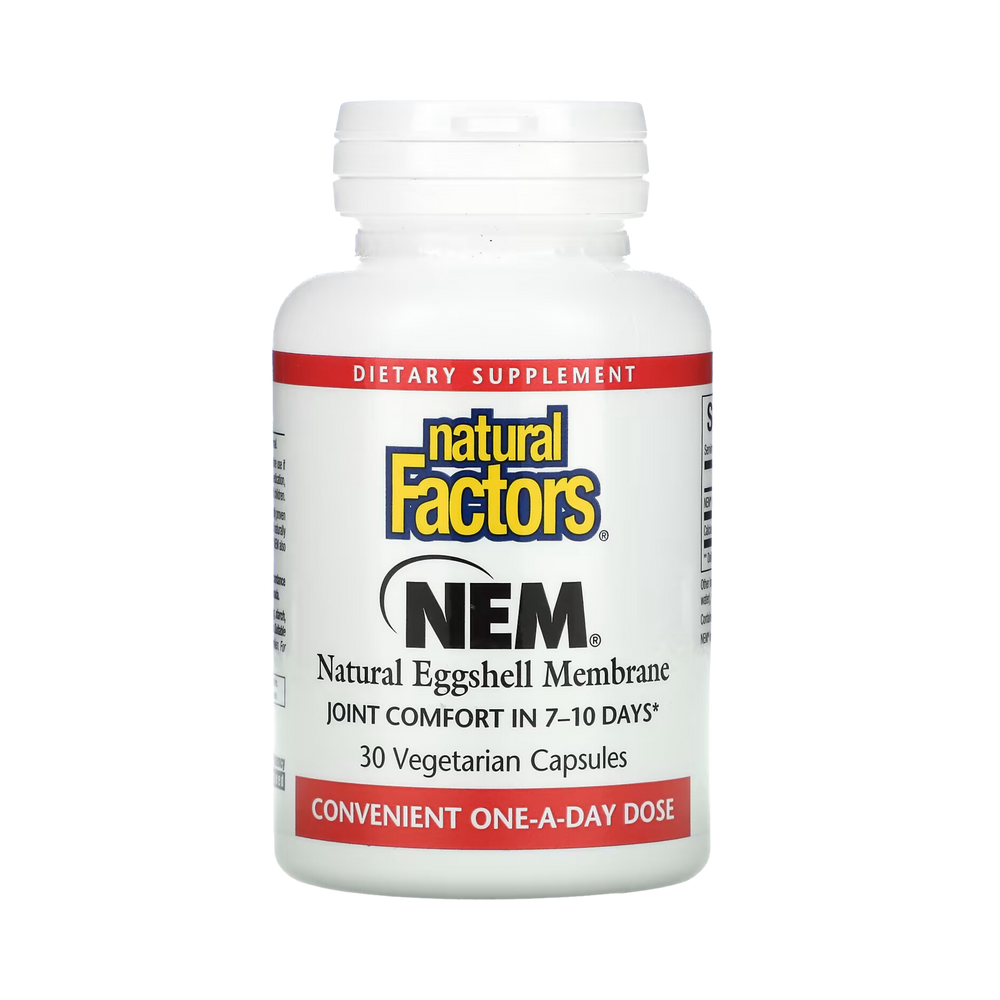 NEM (Natural Eggshell Membrane), made by a patented process, is clinically proven to promote joint comfort and flexibility in just 7 to 10 days. Composed of naturally occurring glycosaminoglycans including chondroitin and hyaluronic acid, NEM also contains collagen and other beneficial proteins.