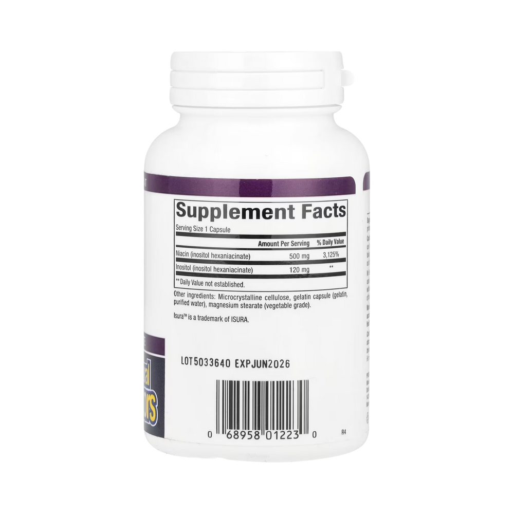 No Flush Niacin contains inositol hexaniacinate, a form of niacin (vitamin B3) used in Europe for over 40 years. Inositol hexaniacinate is not associated with the side effects of other forms of niacin in high doses, such as flushing of the skin and upset stomach.