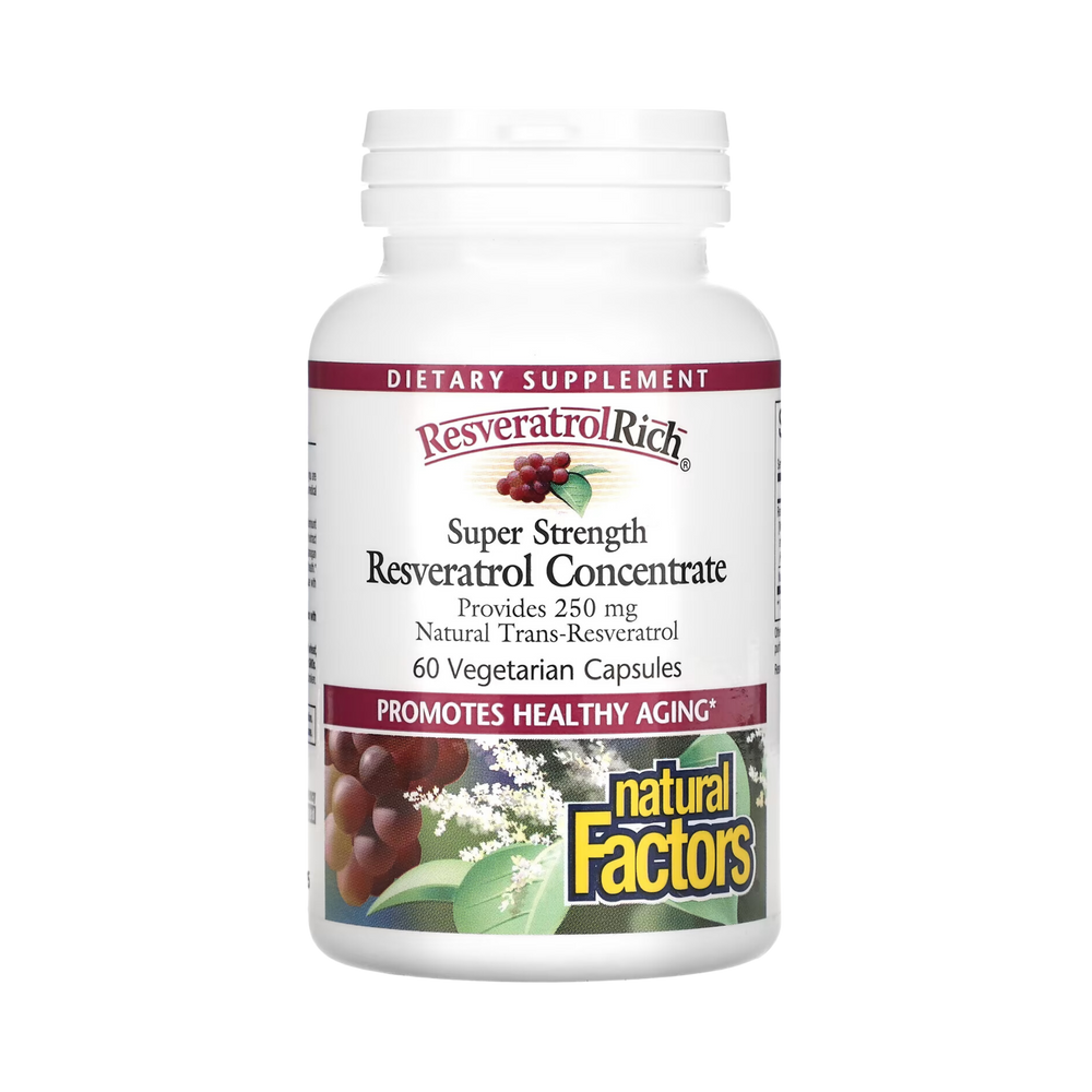 Natural Factors, ResveratrolRich, Super Strength, Resveratrol Concentrate, 60 Vegetarian Capsules