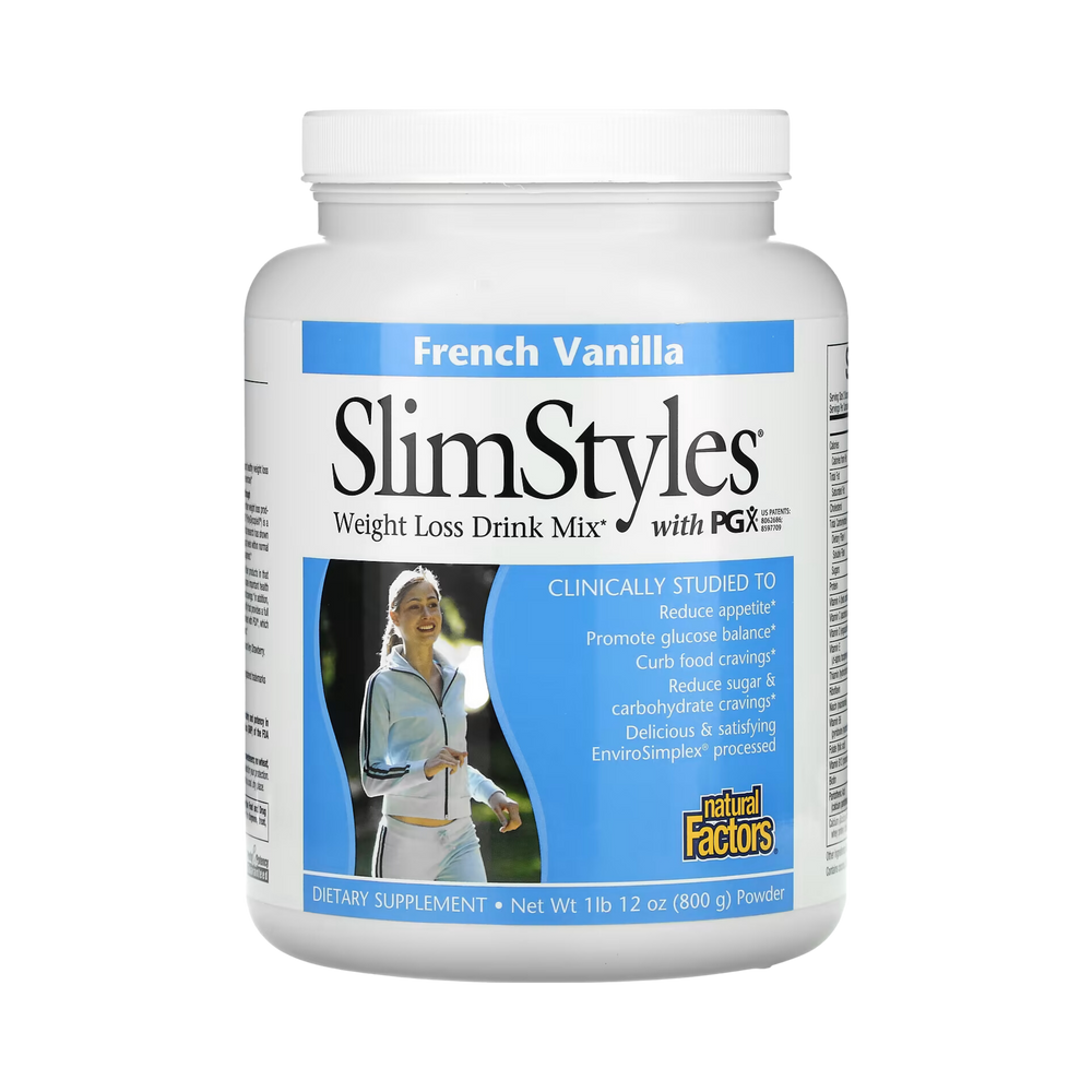 Natural Factors, SlimStyles, Weight Loss Drink Mix Powder with PGX, French Vanilla, 1 lb 12 Oz