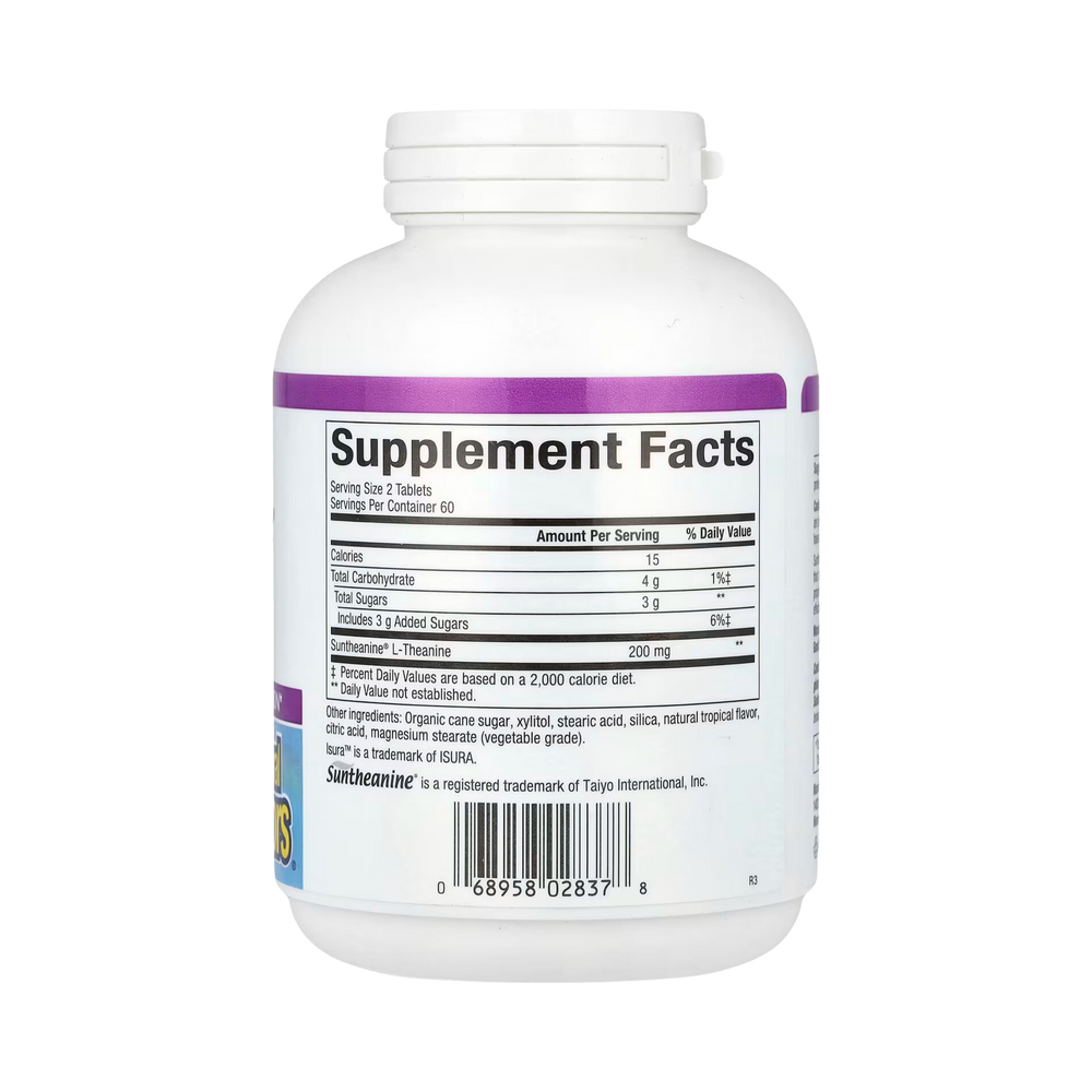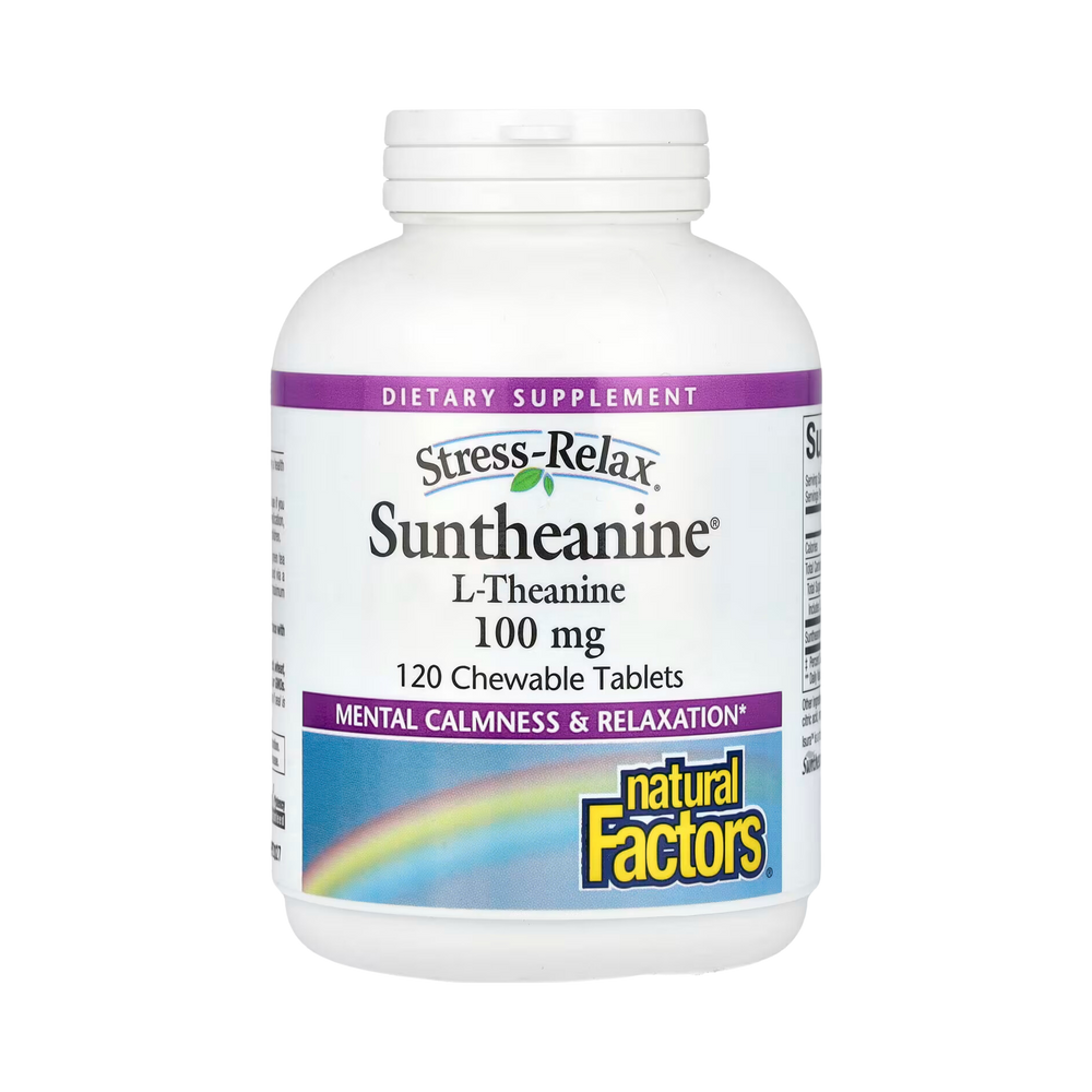 Suntheanine contains pure L-Theanine, a unique amino acid found in green tea that supports mental calmness and relaxation. Suntheanine is produced via a proprietary enzymatic process guaranteeing essentially pure L-Theanine for maximum effectiveness. In a tasty tropical-flavored chewable tablet.