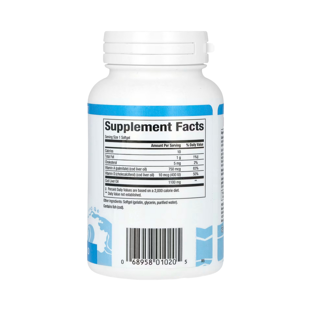 Super Cod Liver Oil softgels are an excellent source of preformed vitamins A and D, providing good support for overall good health. Vitamins A and D work synergistically to promote healthy vision, skin and mucous membranes, and maintain strong bones and teeth. Vitamin D increases the body's absorption of calcium from food . Its role in regulating calcium levels also helps regulate the immune system and maintain healthy nerves and muscles.