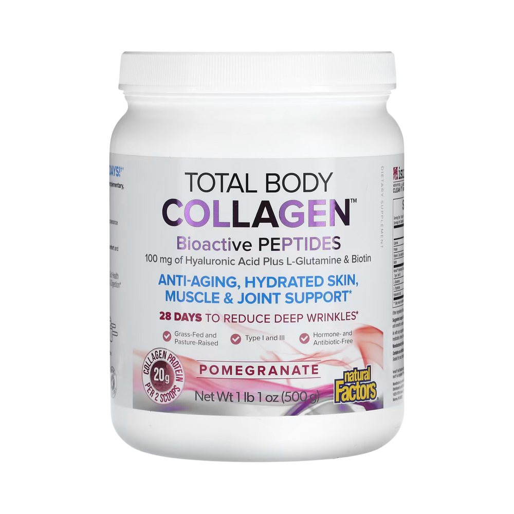 Natural Factors, Total Body Collagen, Bioactive Peptides, Pomegranate, 100 mg, 1 lb 1 oz (500 g)