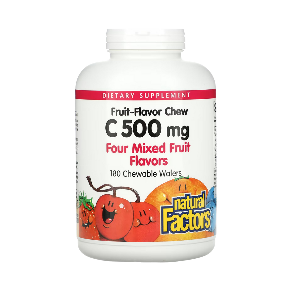 Natural Factors, Fruit-Flavor Chew Vitamin C, Four Mixed Fruit Flavors, 500 Mg, 180 Chewable Wafers