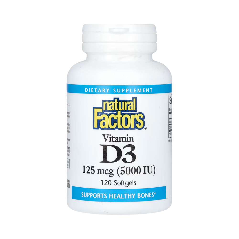 Natural Factors, Vitamin D3, 125 mcg (5,000 IU), 120 Softgels