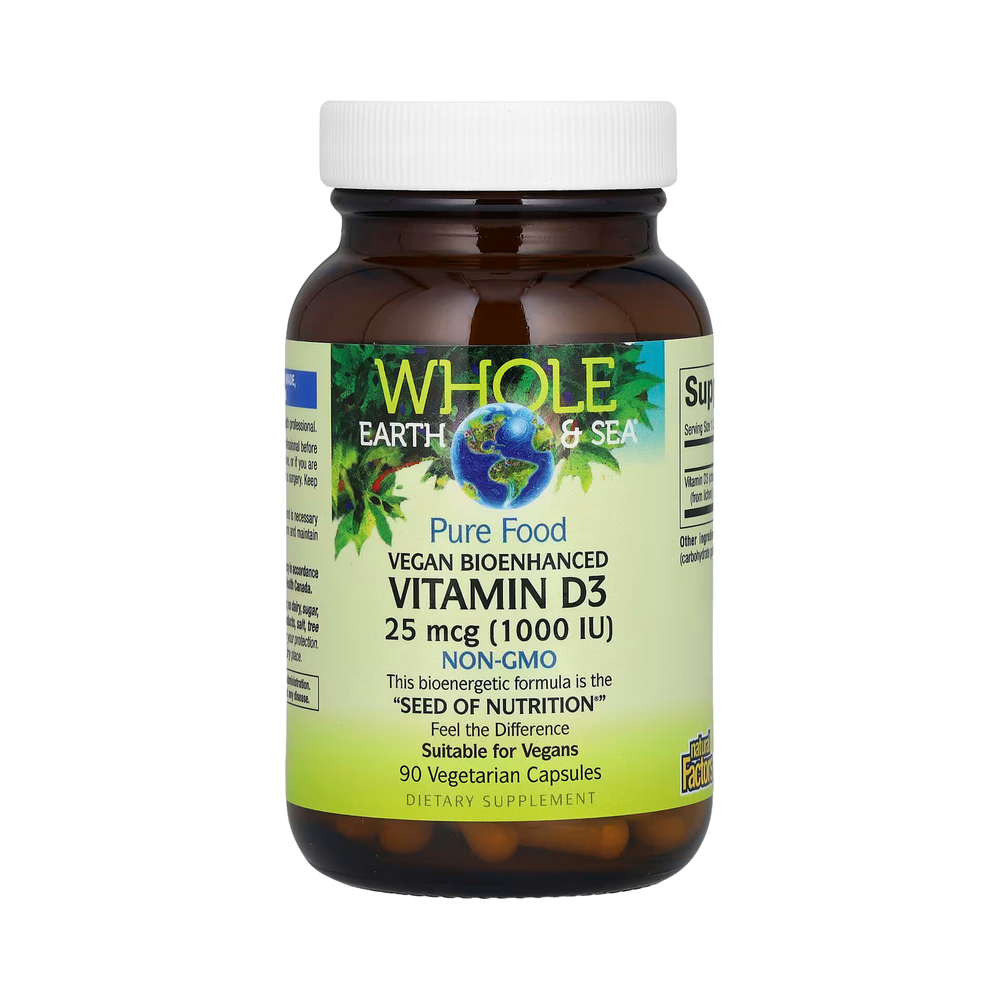 Natural Factors, Whole Earth & Sea, Vegan Bioenhanced Vitamin D3, 25 mcg (1,000 IU), 90 Vegetarian Capsules