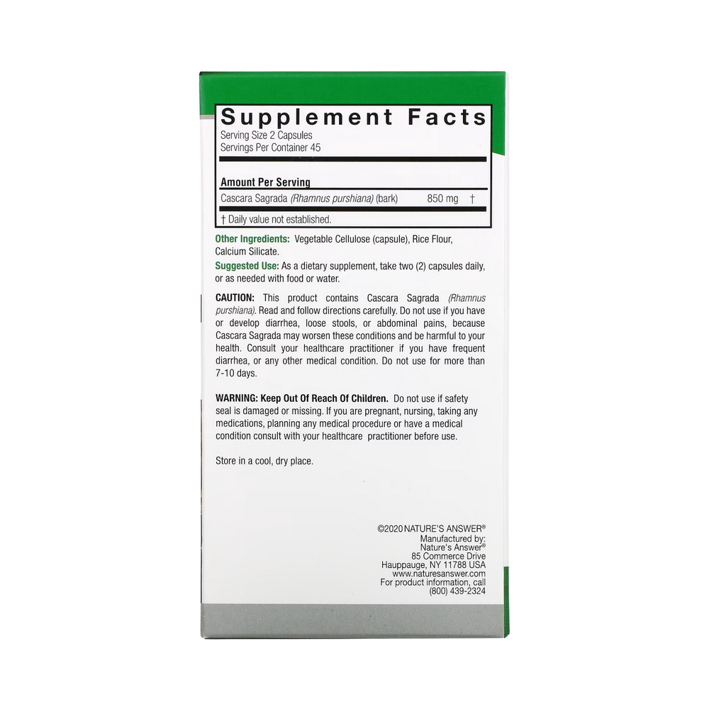 Nature’s Answer - Cascara Sagrada Bark, 90 Capsules