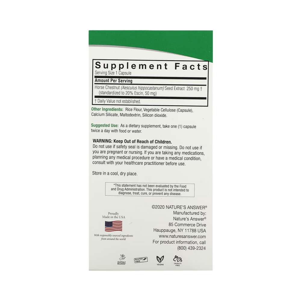 Horse Chestnut (Aesculus hippocastanum) Seed Extract (standardized to 20% Escin, 50 mg) 250 mg †