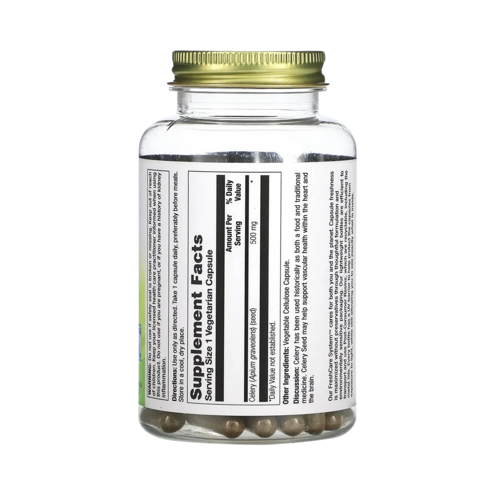 Celery (Apium graveolens) (seed). Other Ingredients: Vegetable Cellulose Capsule.