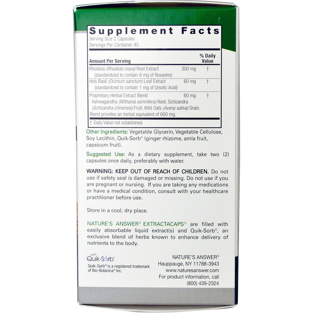 Nature’s Answer adrenal blend is alcohol-free, Holistically balanced, and includes our Proprietary Quik-Sorb blend of Ginger, Amla, and Capsicum, to support absorption.