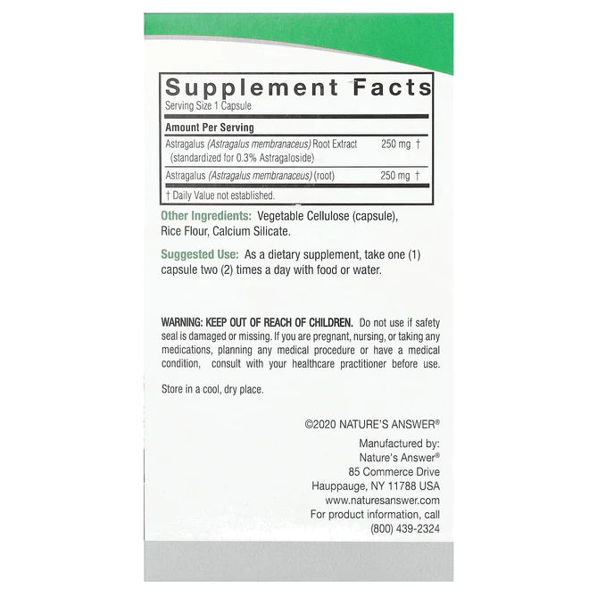 Nature's Answer - Astragalus, 60 Vegetarian Capsules