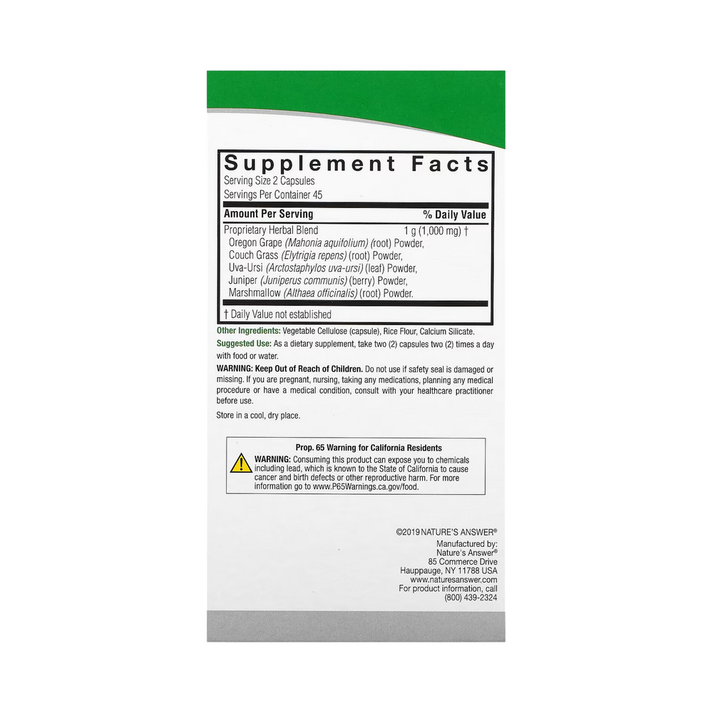 Oregon Grape (Mahonia aquifolium) (root) Powder, Couch Grass (Elytrigia repens) (root) Powder, Uva-Ursi (Arctostaphylos uva-ursi) (leaf) Powder, Juniper (Juniperus communis) (berry) Powder, Marshmallow (Althaea officinalis) (root) Powder. 1 g