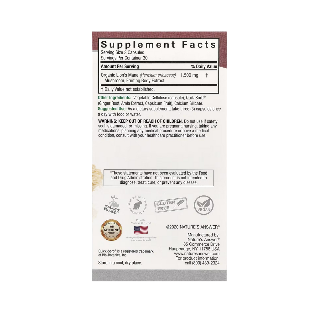 Lion’s Mane capsules are used to promote mental clarity, focus, and memory. It also supports a healthy immune system.
