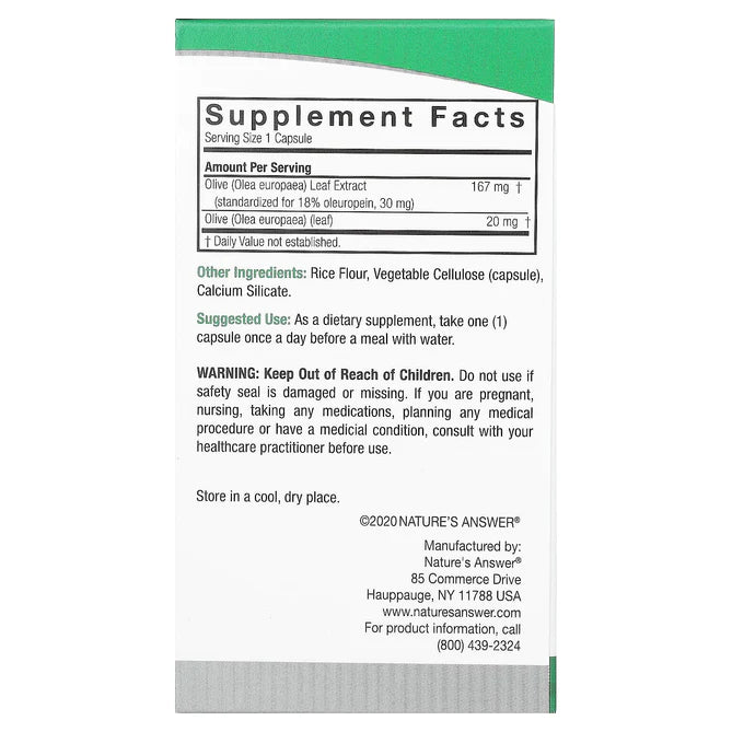 Nature's Answer - Olive Leaf, 60 Vegetarian Capsules
