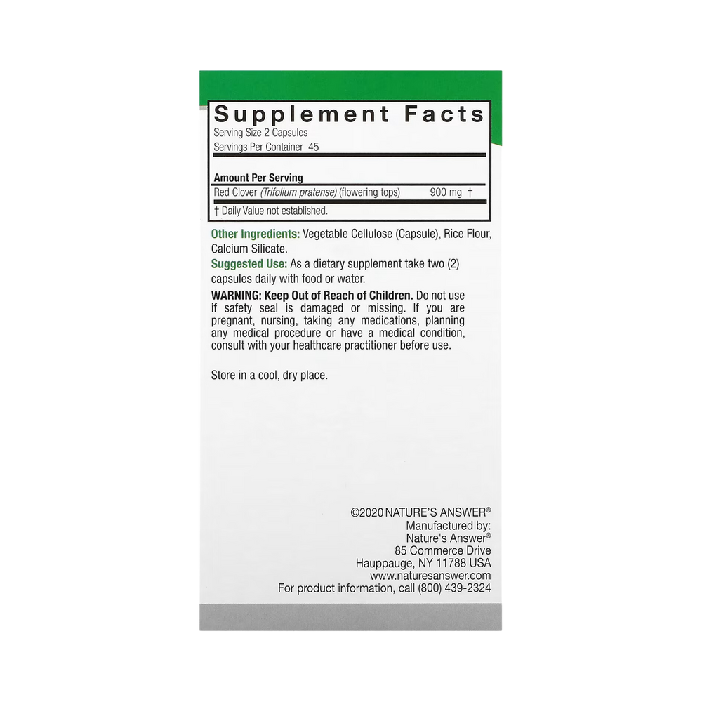 Nature's Answer - Red Clover, 90 Vegetarian Capsules