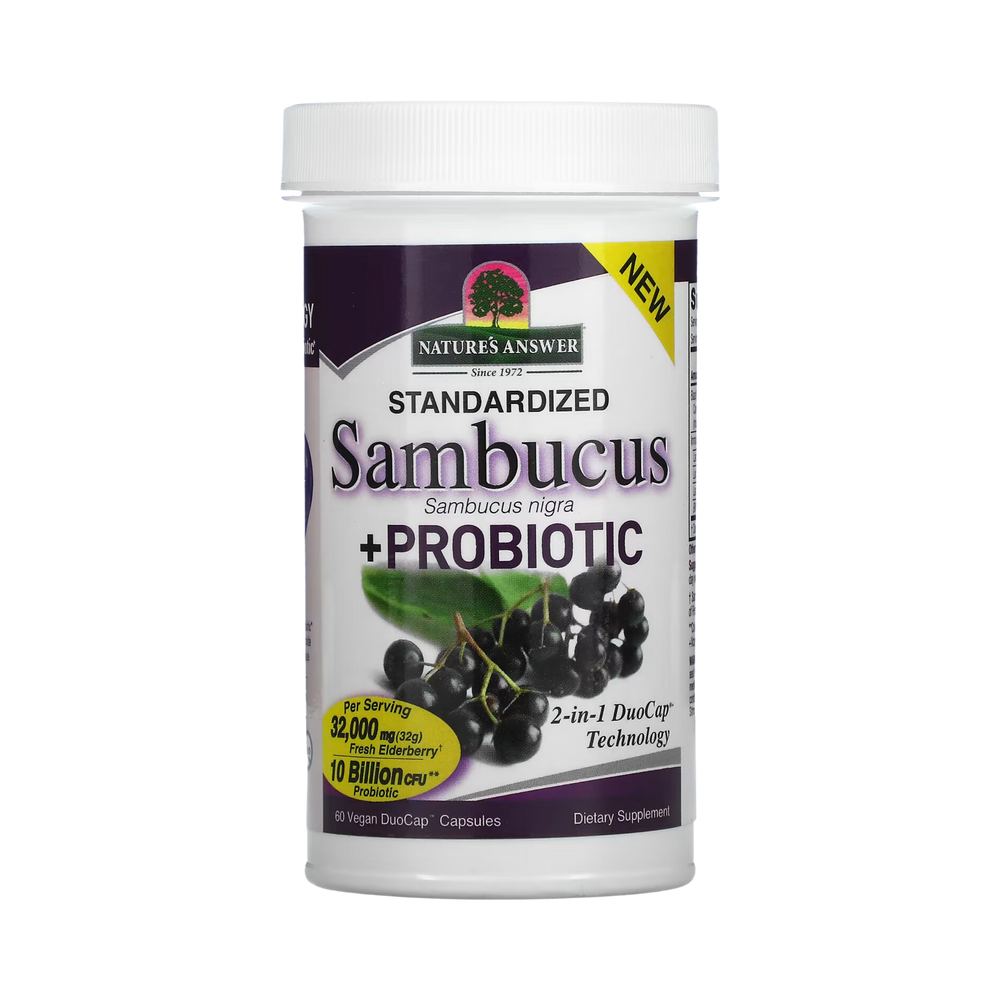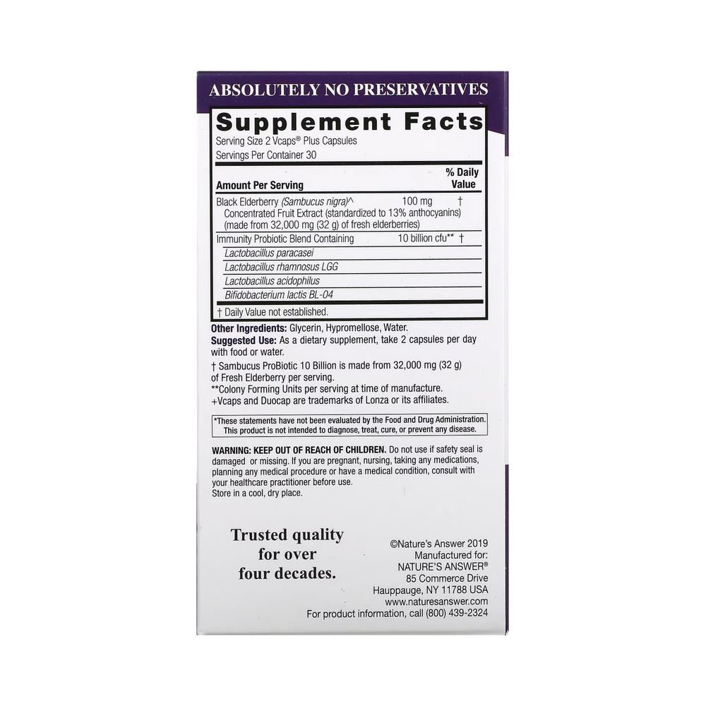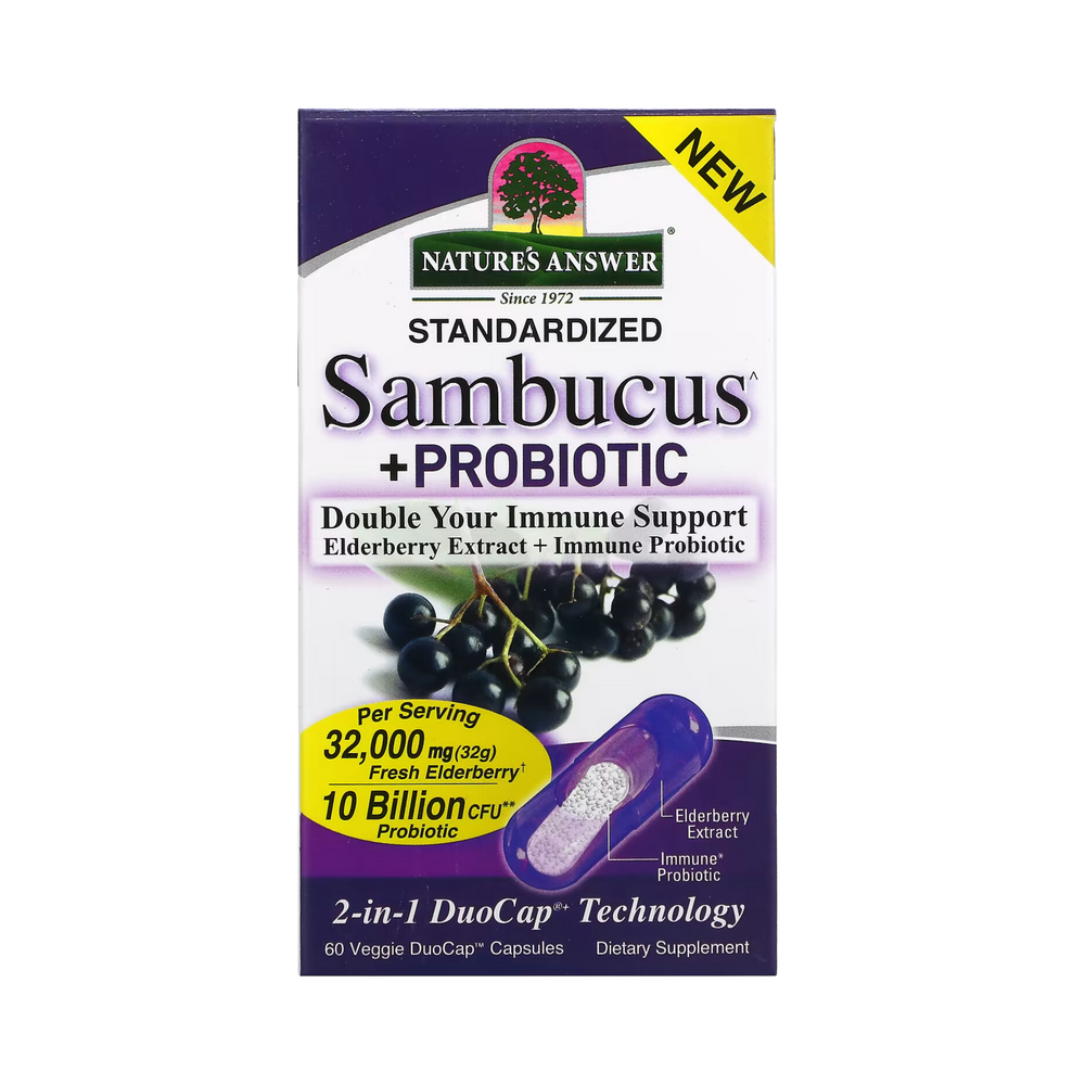 Sambucus Probiotic teams up two natural components with revolutionary technology, allowing them to work synergistically in providing superior immune & digestive support. Providing Double the Immune Support* with Super Concentrated Pure Black Elderberry Extract and Specific Probiotic Cultures.