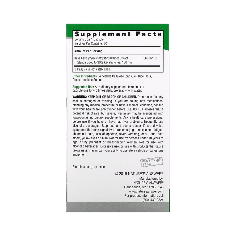 Kava Kava (Piper methysticum) Root Extract (standardized to 30% Kavalactones, 100 mg) 365 mg †