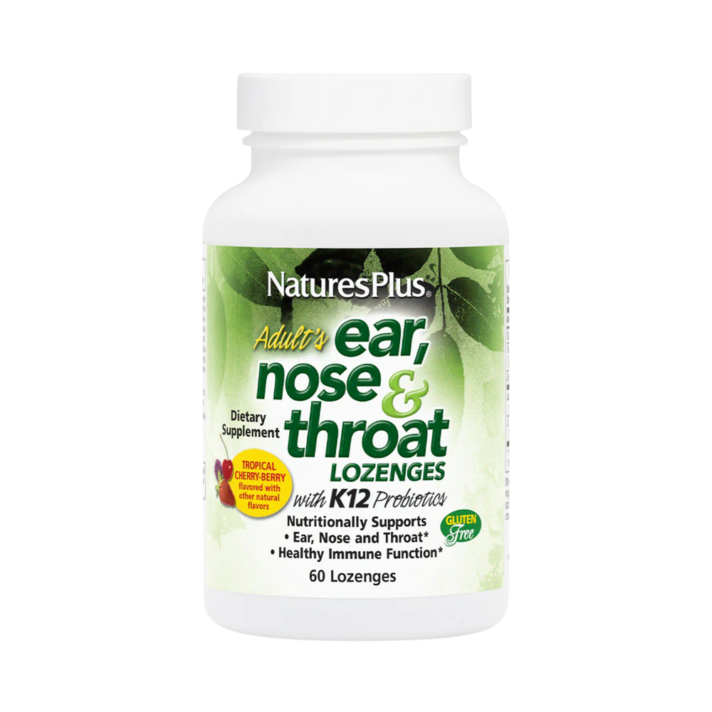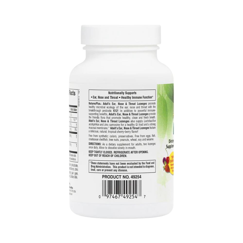 NaturesPlus, Adult's Ear, Nose & Throat Lozenges with K12 Probiotics, Natural Tropical Cherry-Berry, 60 Lozenges