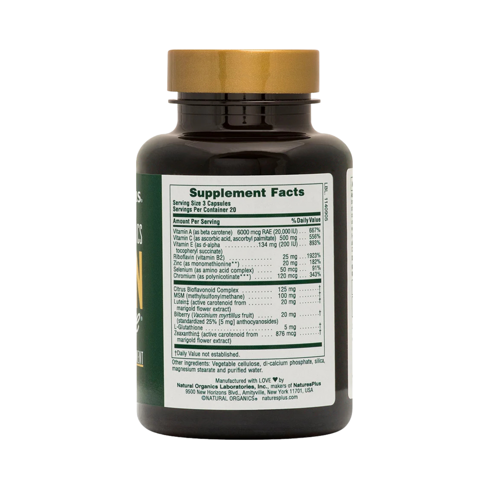 | Bilberry (Vaccinium myrtillus fruit) (standardized 25% [5 mg] anthocyanosides) | 20 mg | † |