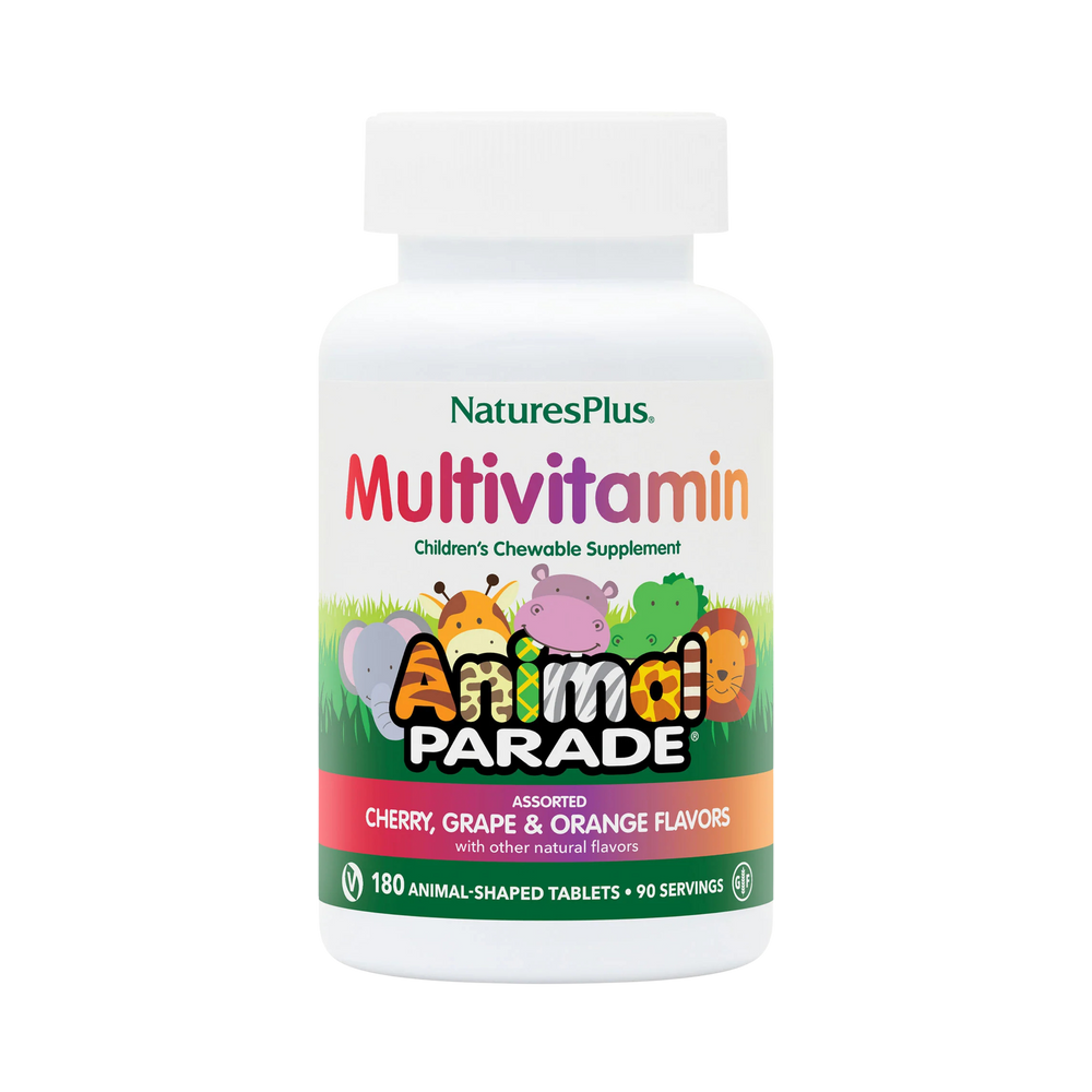 NaturesPlus, Animal Parade, Children's Chewable Multivitamin Supplement, Cherry, Grape & Orange, 180 Animal-Shaped Tablets