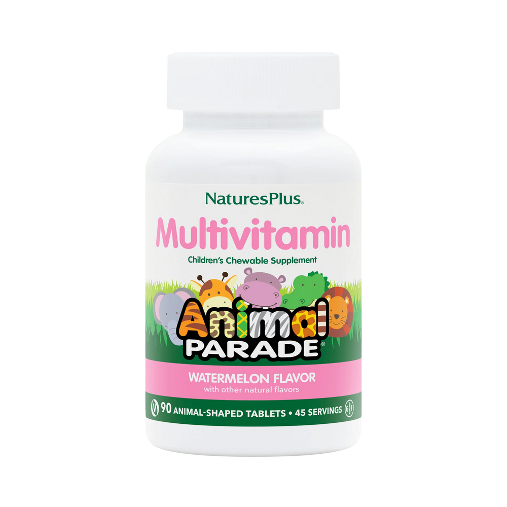 NaturesPlus, Animal Parade, Children's Chewable Multivitamin Supplement, Watermelon, 90 Animal-Shaped Tablets