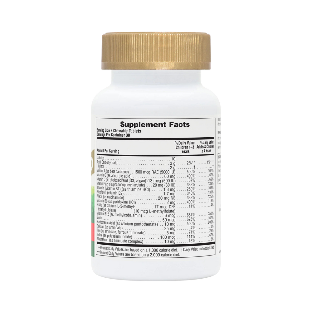 Xylitol, natural color (beet juice), citric acid, guar gum, natural flavors, natural cherry flavor, natural raspberry flavor, stearic acid, magnesium stearate, certified organic gold standard whole food blend (organic acerola extract, apple, broccoli sprout, cauliflower sprout, collard, cordyceps mushroom mycelia, kale, kale sprout, maitake mushroom mycelia, nettle, parsley, beet juice, carrot root, spirulina, reishi mushroom mycelia, shiitake mushroom mycelia, spinach, tomato juice, bilberry, blueberry, chlorella), apple pectin, calcium carbonate, ferrous fumarate, magnesium oxide, zinc oxide, potassium iodide, inositol, rose hips, whole brown rice, broccoli, spinach, mango fruit, carrot, West Indian cherry (malpighia glabra fruit), papaya fruit. Mineral aminoates are whole brown rice chelates.