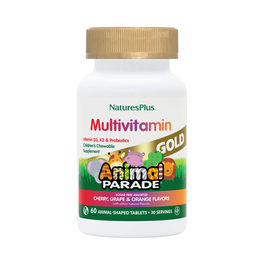NaturesPlus, Animal Parade Gold, Children's Chewable Supplement, Cherry, Grape & Orange, 60 Animal-Shaped Tablets