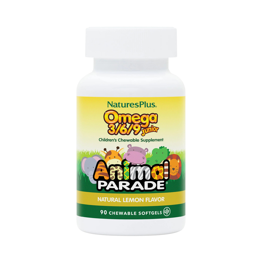 A lot of kids just don't like fish...we get it. But you know that the omega fats found in seafood are crucial for children's optimal brain and heart health. That's why we've created Animal Parade® Omega 3/6/9 Junior, combining fish oil with three other omega-rich oils to provide six balanced fatty acids (including DHA and EPA)-all tucked inside a lemony, easy-to-chew softgel your kids will love!