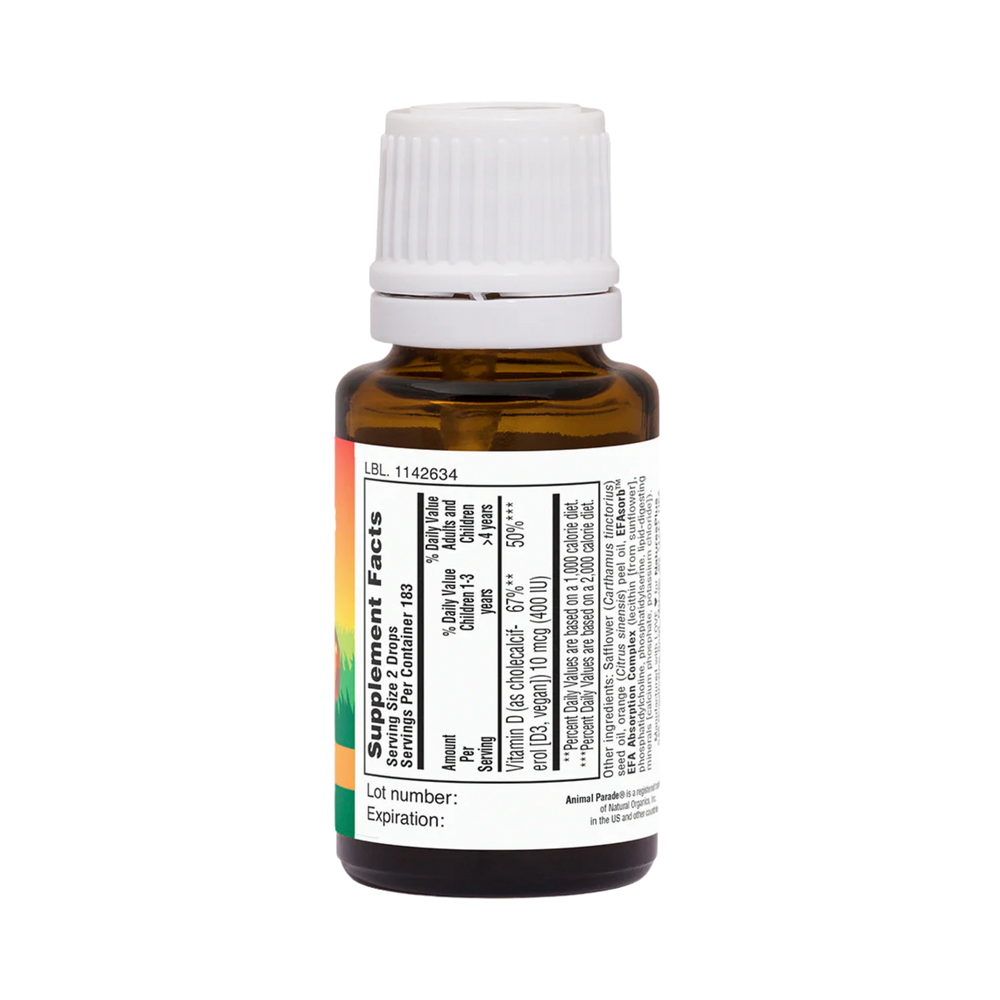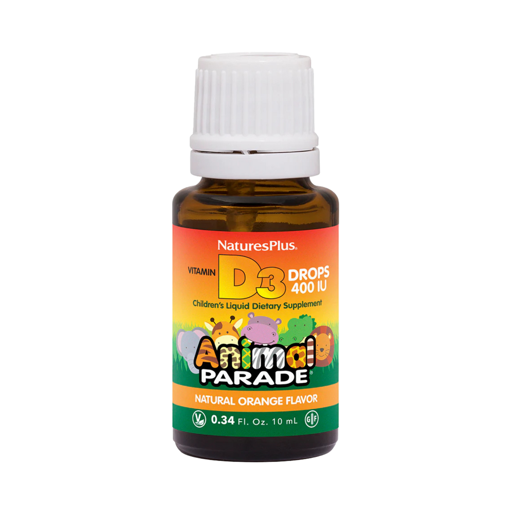 NaturesPlus, Animal Parade, Vitamin D3 Drops, Natural Orange, 10 Mcg, 0.34 Fl Oz