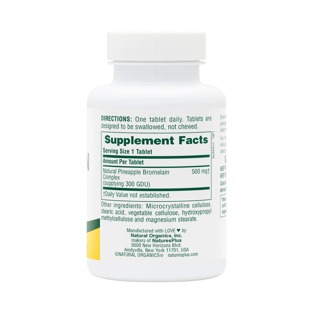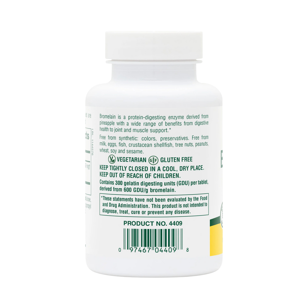 Contains 300 gelatin digesting units (GDU) per tablet, derived from 600 GDU/g bromelain.