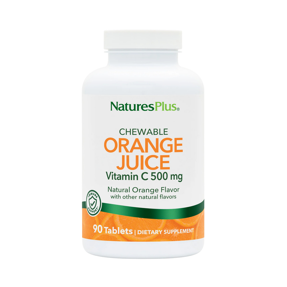 NaturesPlus, Chewable Orange Juice, Vitamin C, Natural Orange, 500 Mg, 90 Tablets