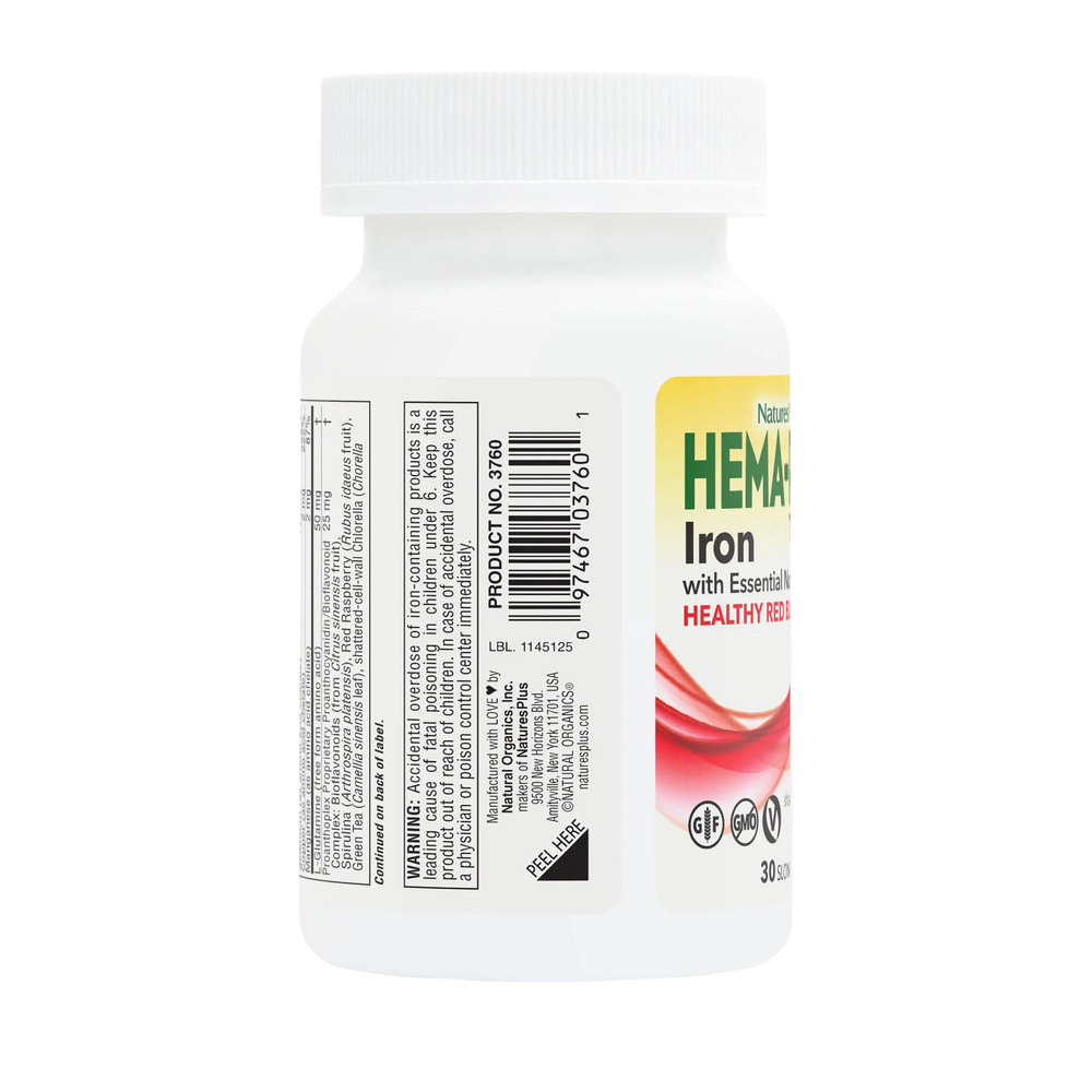 Ferrous fumarate, microcrystalline cellulose, di-calcium phosphate, hydroxypropyl methyl cellulose, stearic acid, manganese sulfate, silica, magnesium stearate, spirulina, calcium carbonate, chlorophyll, spinach (spinacia oleracea leaf), broccoli (brassica oleracea floret), shattered-cell-wall chlorella and pharmaceutical glaze.