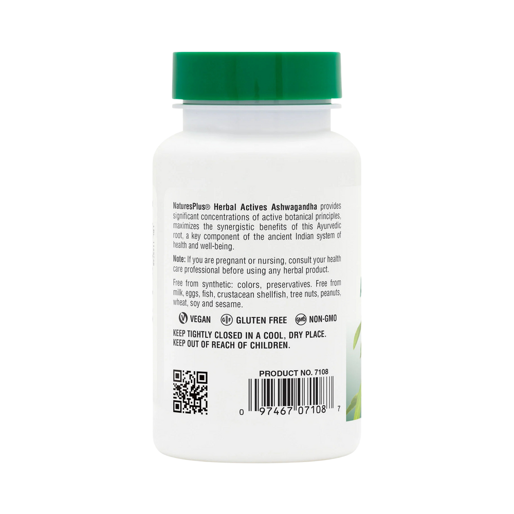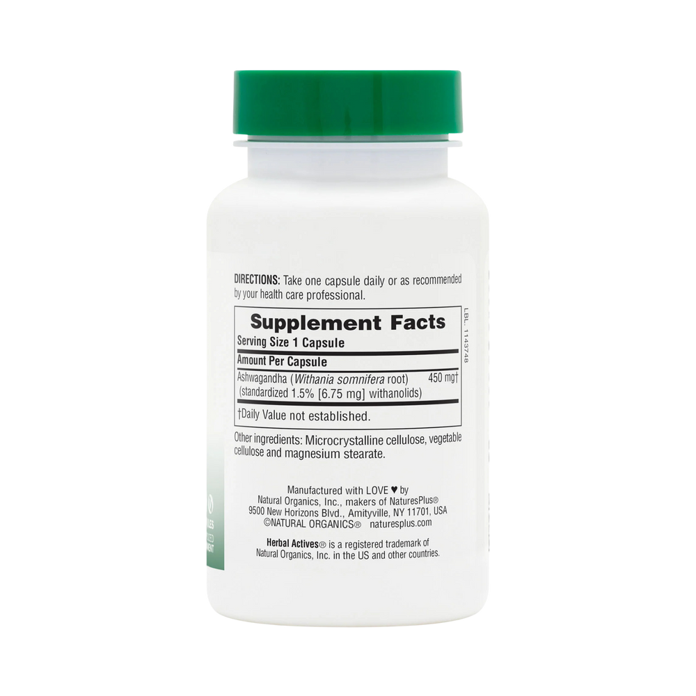NaturesPlus® Herbal Actives Ashwagandha provides significant concentrations of active botanical principles, maximizes the synergistic benefits of this Ayurvedic root, a key component of the ancient Indian system of health and well-being.
