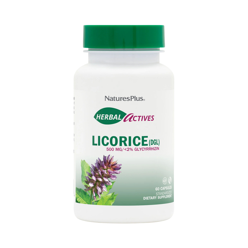 NaturesPlus® Herbal Actives Deglycyrrhizinated Licorice (DGL) provides significant concentrations of active botanical principles, maximizing the synergistic benefits of the whole root, which naturally contains flavonoids, isoflavonoids and coumarins.