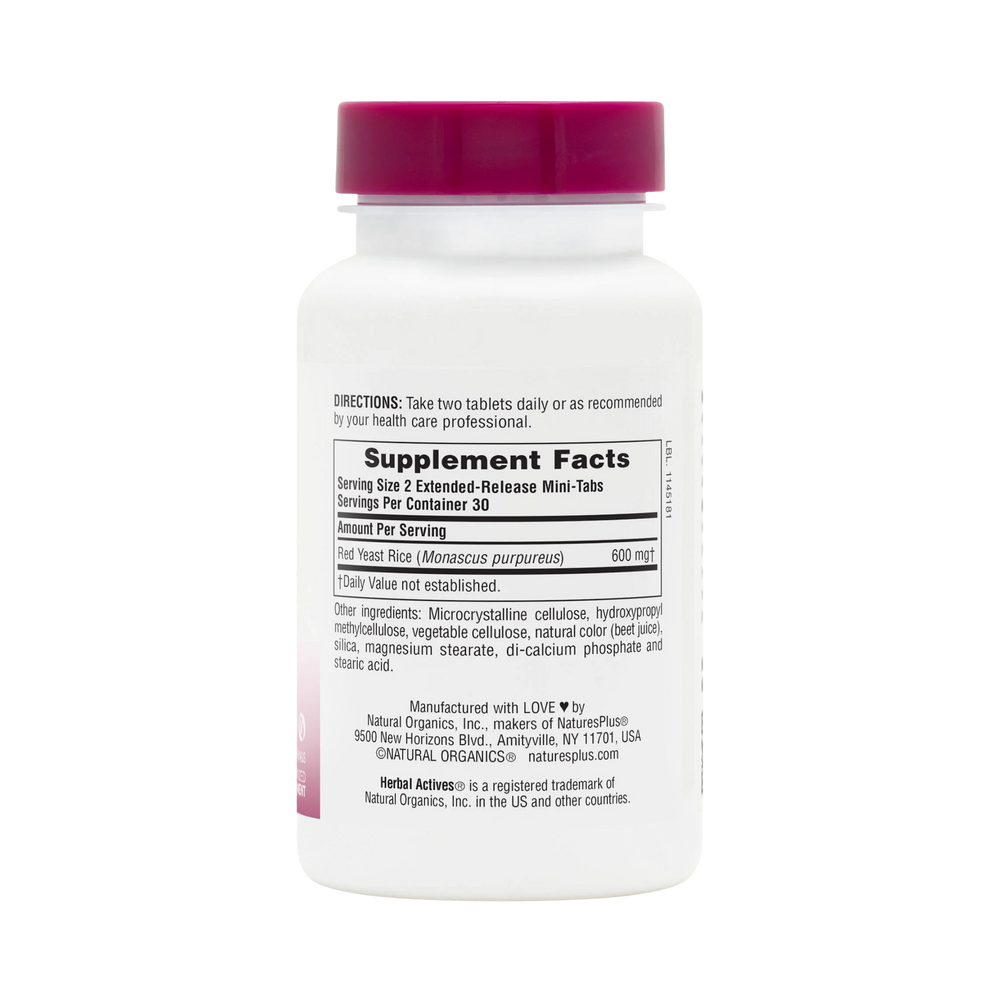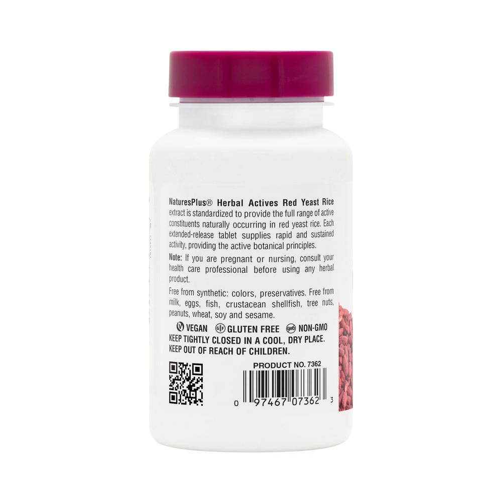 Nature's Plus Herbal Actives Red Yeast Rice extract is uniformly standardized to provide the full range of active constituents naturally occurring in red yeast rice. Each tablet is a revolutionary extended-release system that provides rapid and sustained results. Providing the greatest concentration of active botanical principles, Herbal Actives Red Yeast Rice maximizes the synergistic benefits of the whole extract.