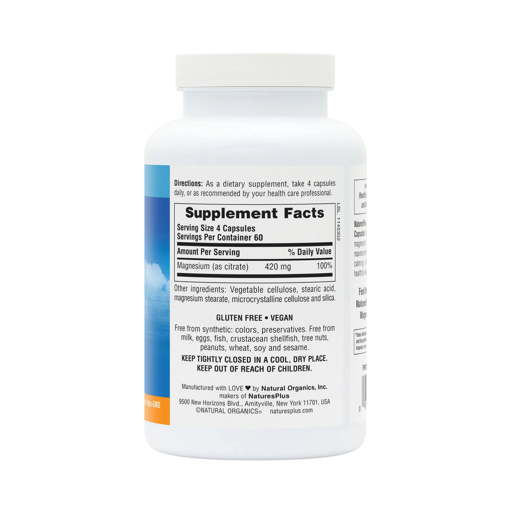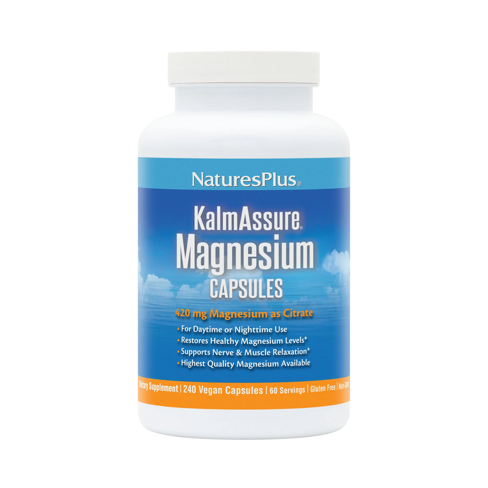 NaturesPlus® KalmAssure. Magnesium Capsules deliver 420 mg of naturally calming, essential magnesium in highly bioavailable citrate form.