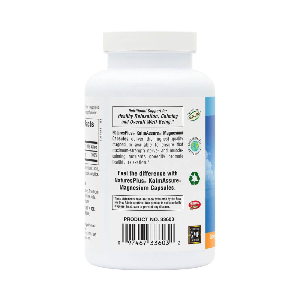 Natures Plus® KalmAssure. Magnesium Capsules deliver the highest quality magnesium available to ensure that maximum-strength nerve- and muscle-calming nutrients speedily transport you to a state of healthful relaxation.